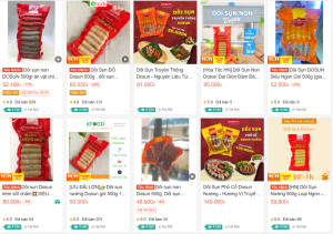 “dồi sụn đông lạnh”, “ship toàn quốc”, “dồi sụn ăn liền”, “dồi sụn tiện lợi nấu lẩu”.