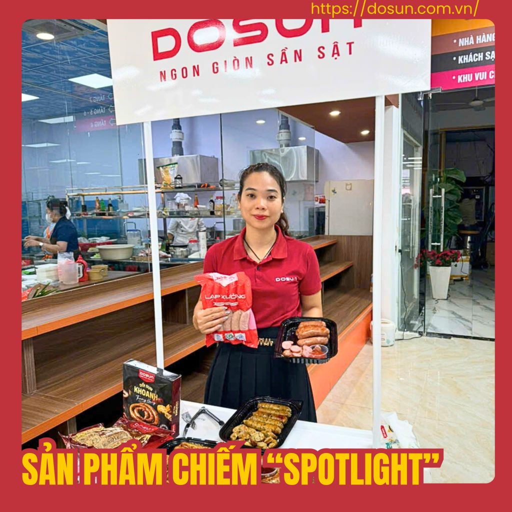 Trong sự kiện ra mắt bộ sản phẩm cao cấp 2025, DOSUNFOOD đã tổ chức booth ăn thử tại siêu thị Hoàng Mấm – Thái Nguyên và mang đến hàng loạt sản phẩm mới đầy hấp dẫn. Thế nhưng điều khiến cả đội ngũ DOSUN bất ngờ chính là sự “lên ngôi” ngoạn mục của Lạp xưởng tươi – sản phẩm chiếm trọn trái tim của khách hàng ở mọi độ tuổi.
