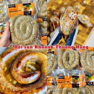Đặc điểm: Vỏ ruột muối, thịt heo, nhiều sụn, nguyên khoanh dài, đường kính to, đã hấp chín.
